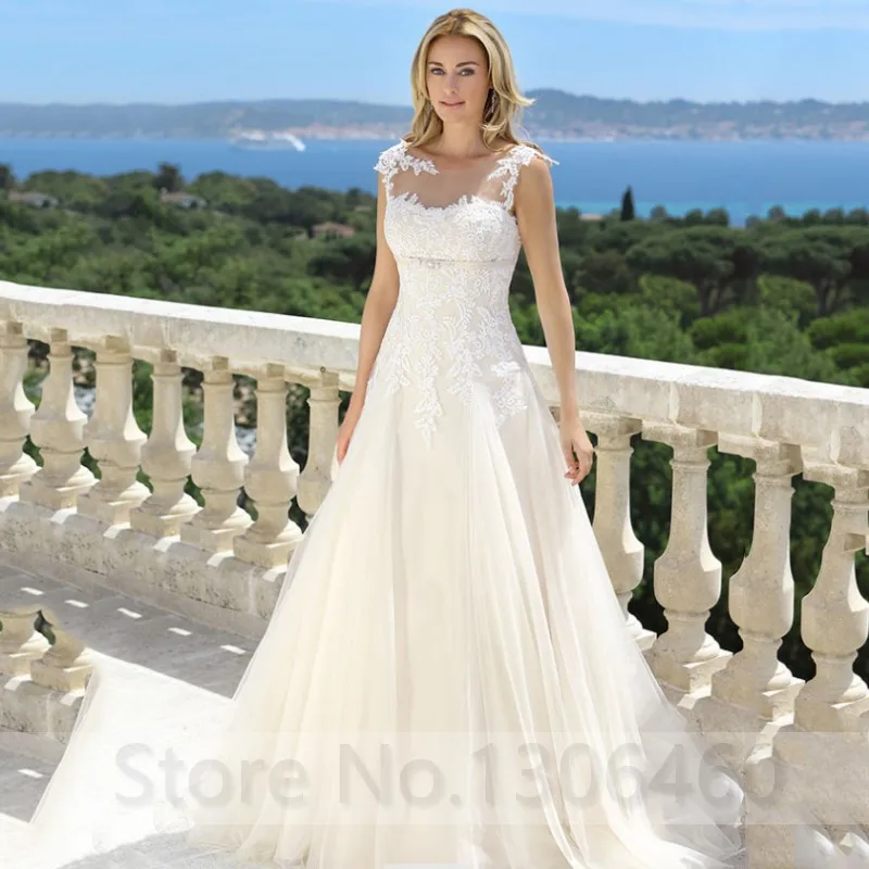 Cap Sleeve Beaded Lace Flowy Beach Wedding Dress Brydealo Sheer Cap Sleeve Wedding Dress
