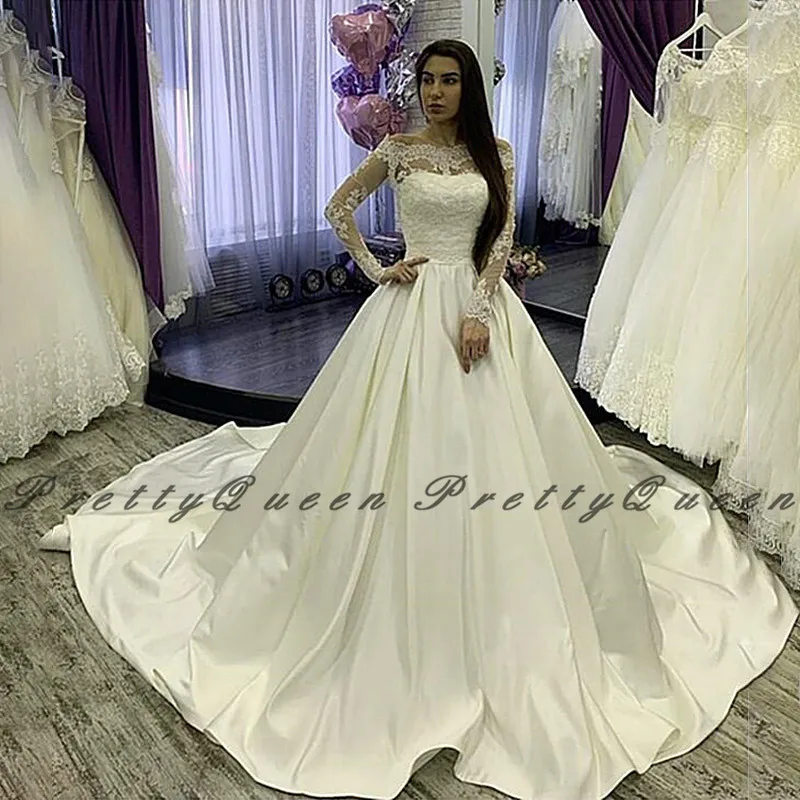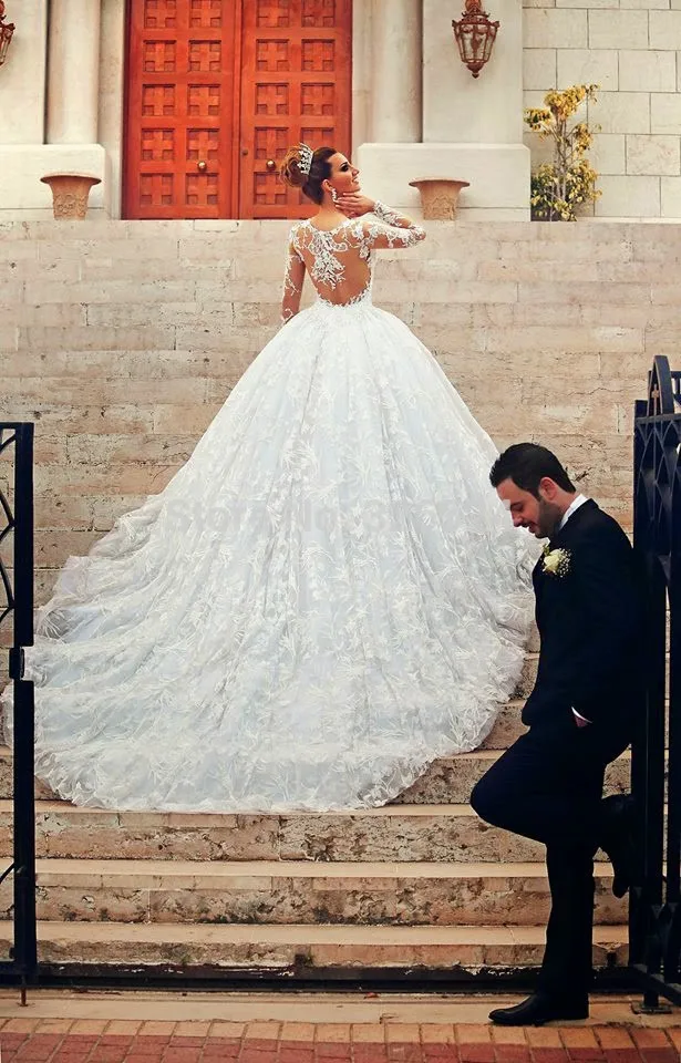 Robe De Mariee Princess Sheer Lace Long Sleeve Ball Bridal Gown Sheer Lace Long Sleeve Wedding Dress