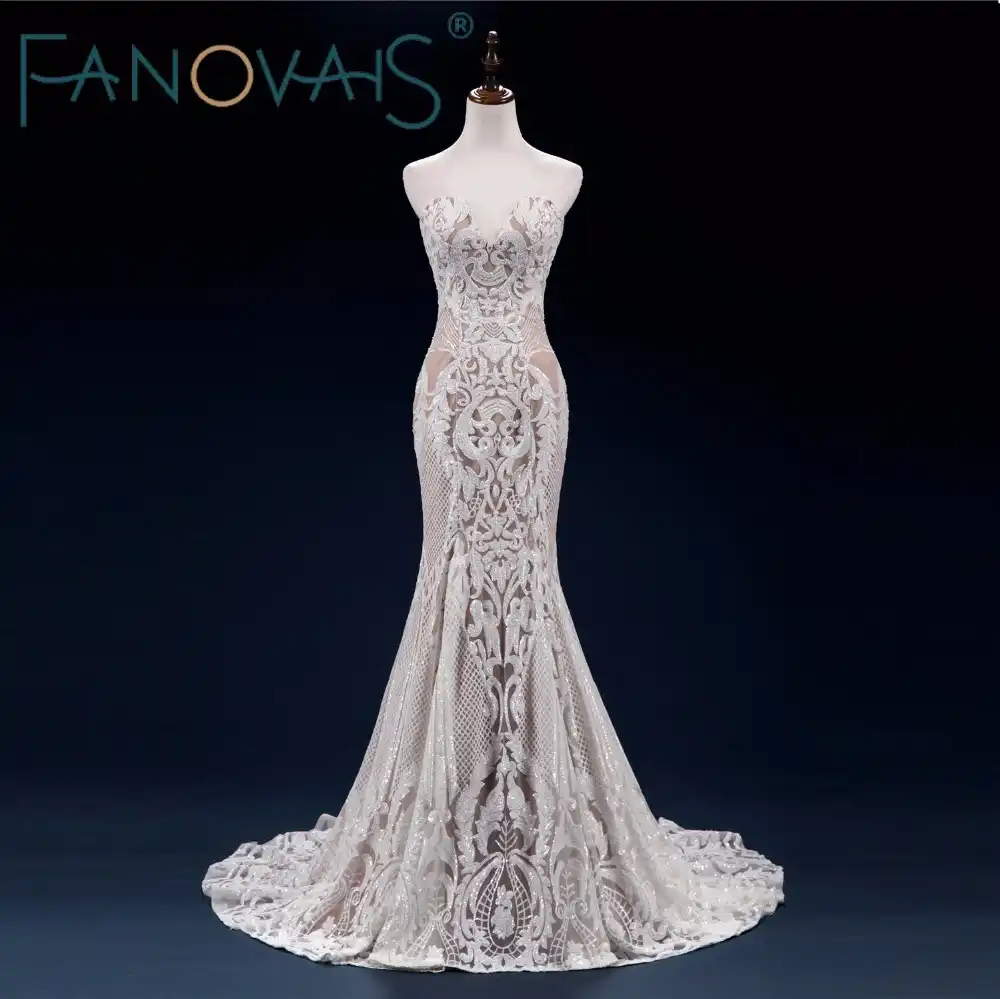 V Neckline Sheer Lace Bodice Mermaid Sexy Wedding Dress Vq Sheer Lace Mermaid Wedding Dress