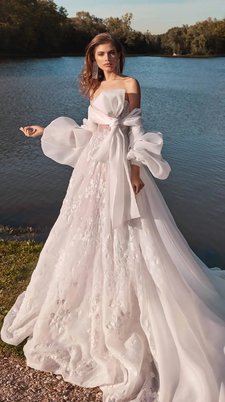 Puffy Sleeve Wedding Dresses Are Back 26 Styles That Feel Modern Sheer Puff Sleeve Wedding Dress