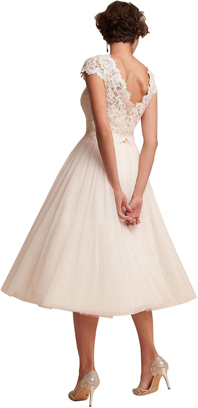 Mulanbridal Short Beach Wedding Dress Lace Bride Dresses Tea Short Beach Weddings Dresses
