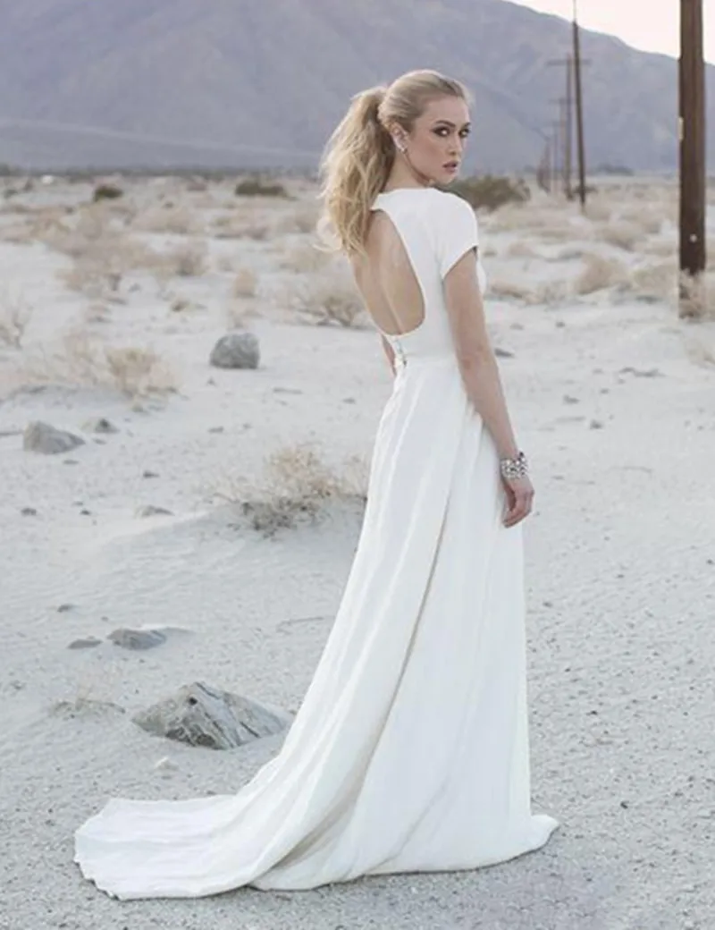 2017 Elegant Casual Beach Wedding Dress Short Sleeve Backless Short Casual Beach Wedding Dresses