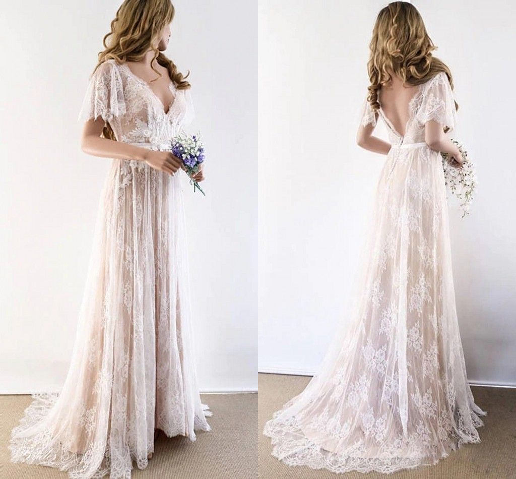 2020 Champagne Country Bohemian Wedding Dresses V Neck Short Sleeves Lace Backless Cheap Wedding Bridal Gowns Plus Size New Wedding Dress Party Wedding Dress Petite From Stunningdress88 71 61 Dhgate Com Short Cheap Wedding Dress