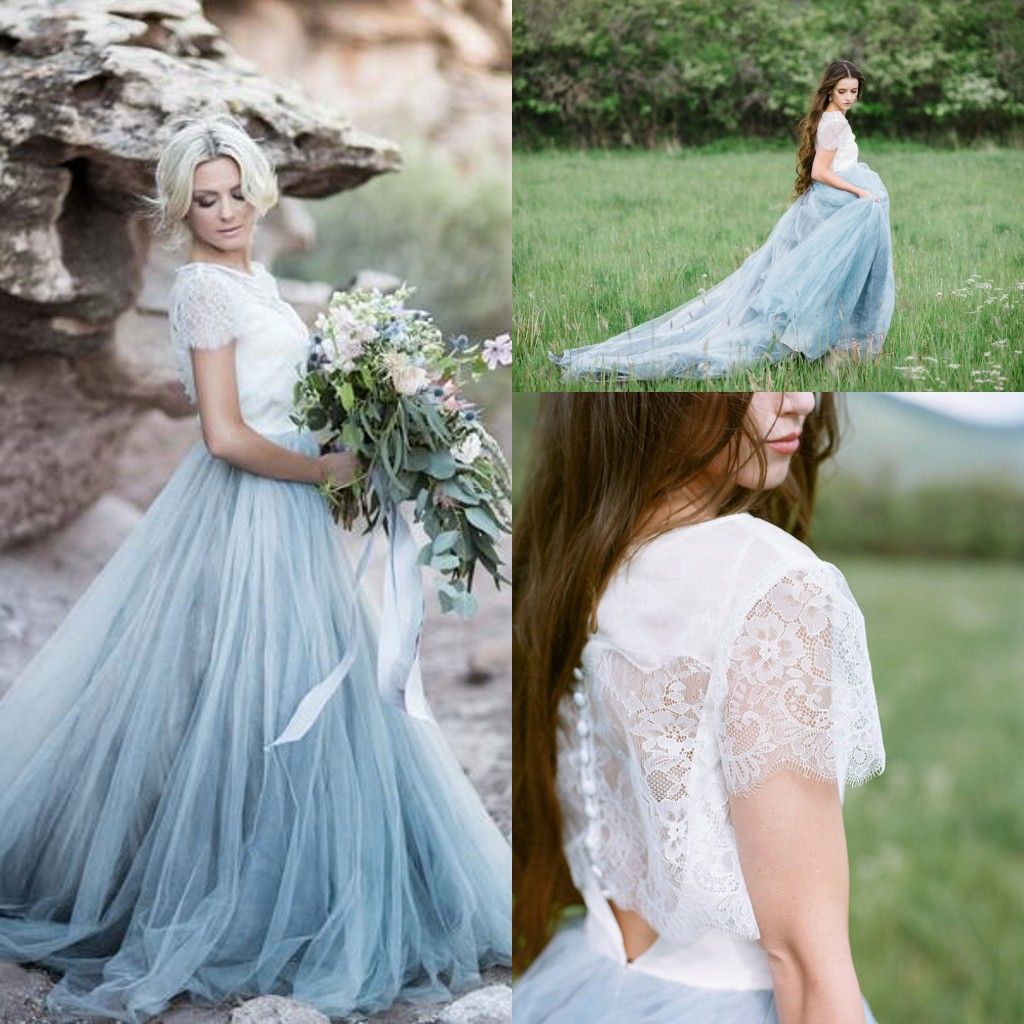 Trendy Wedding Dresses Spanish Destination Wedding Inspiration Short Dusty Blue Wedding Dress