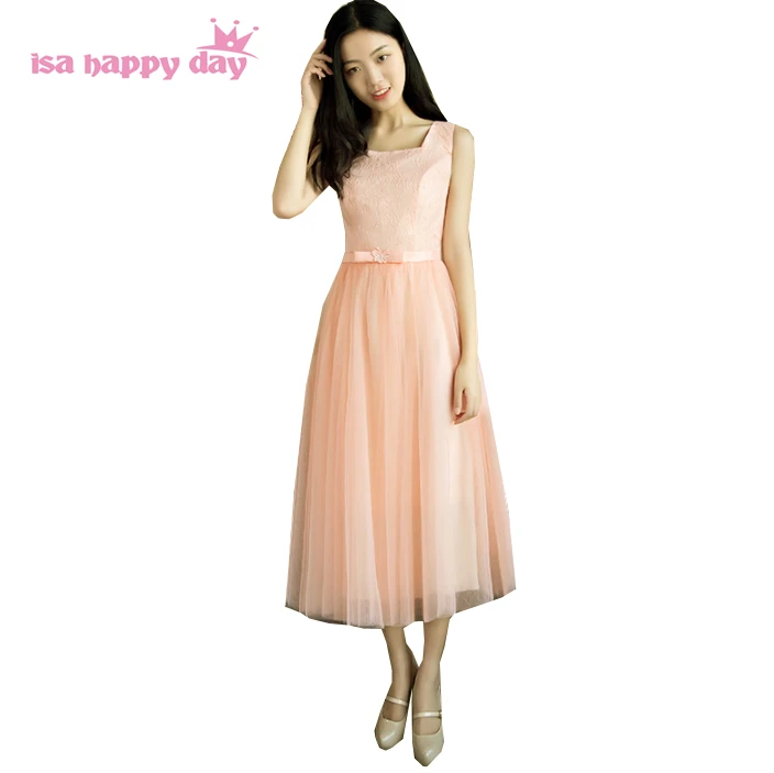 Peach Color Girls Bridesmaid Brides Maid Modest Dresses Bridemaid Short Peach Dresses For Wedding