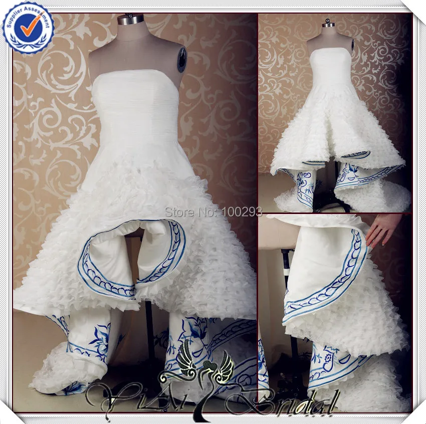 Jj3569 Embroidery Royal Blue And White Wedding Dresses Short In Short Royal Blue And White Wedding Dresses