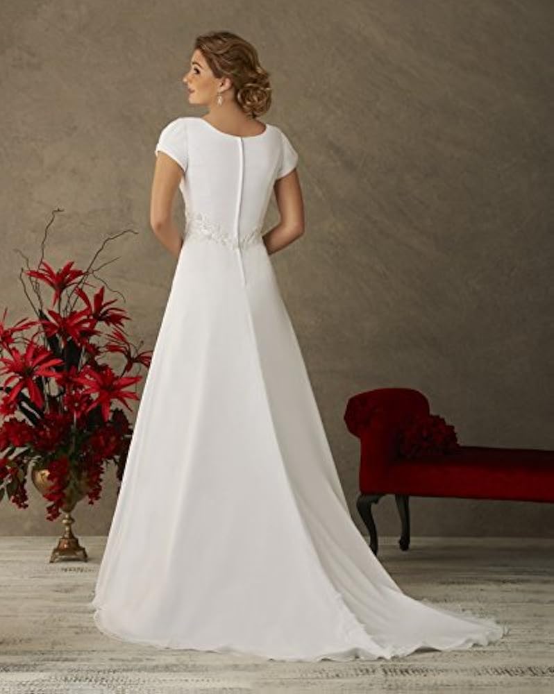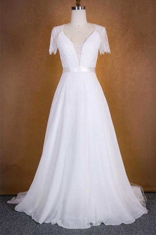 A Line V Neck Short Sleeves Simple Chiffon Wedding Dress With Short Sleeve Chiffon Wedding Dress