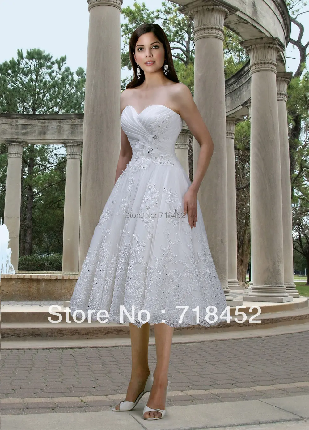Ball Gown Sweetheart Ruched Satin Tulle Lace Beaded Short Wedding Short Sweetheart Wedding Dress