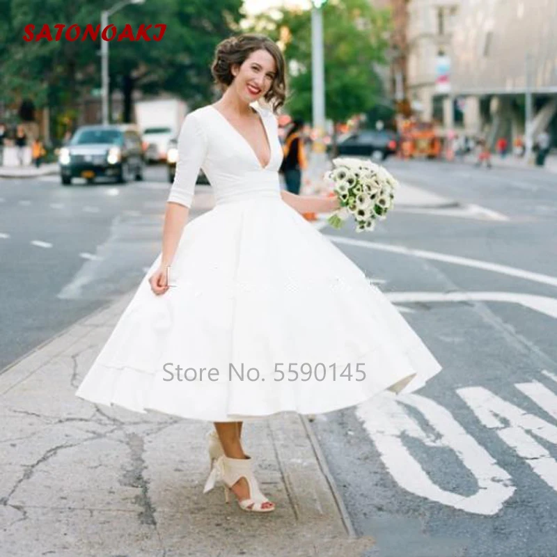 Vintage Modest Wedding Dresses With Short Sleeves Simple Bohemian Short Wedding Dresses Country