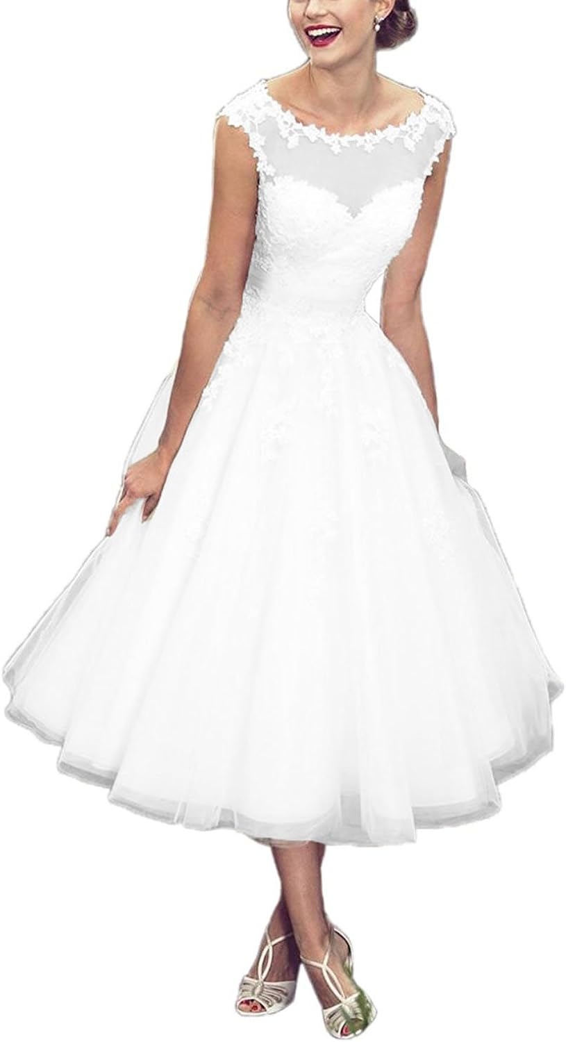 Cdress Tulle Short Wedding Dresses Lace Applique Bridal Gowns For Bride Tea Length At Amazon Women S Clothing Store Short Wedding Dresses Tulle