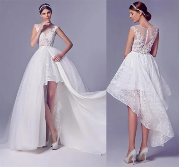High Low Wedding Dresses With Detachable Skirt Beaded Short Front Short Wedding Dresses With Detachable Skirt
