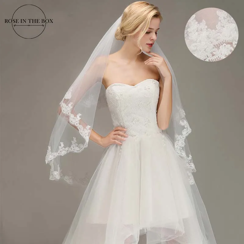 High Quality 1 5 Meters Long Two Layers Lace Edge Short Wedding Short Wedding Dresses With Long Veils