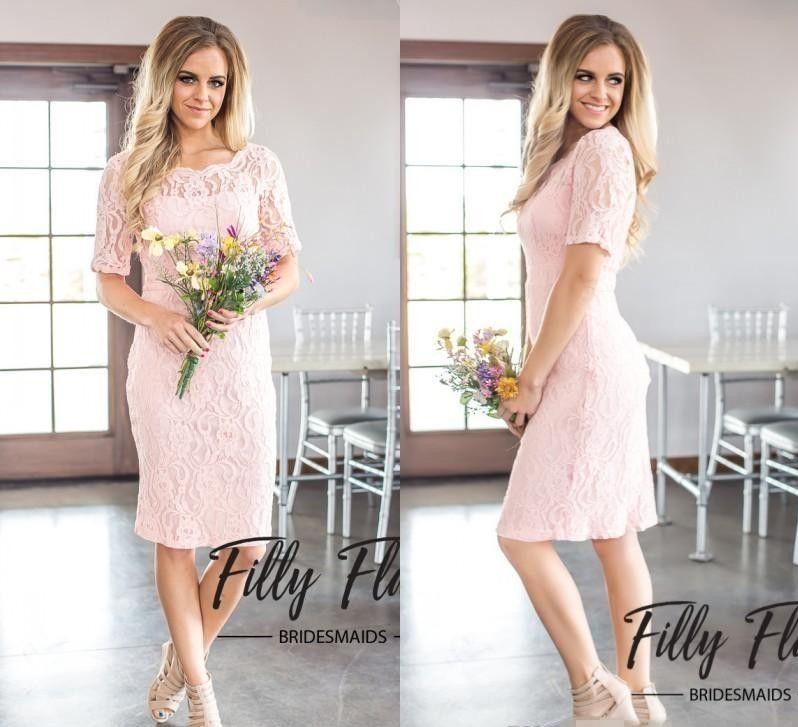 Blush Pink And Light Grey Short Lace And Tulle Bridesmaid Dresses Short Wedding Short Blush Pink Bridesmaid Dresses