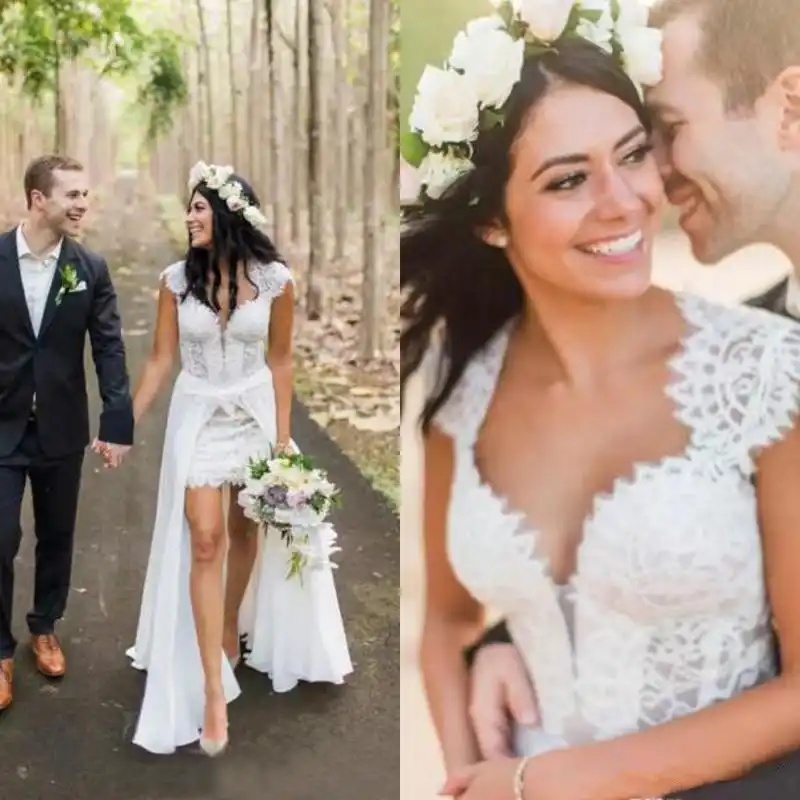 Handmade Beach Wedding Dress White Sheer Mesh Lace Beach Cover Up Short White Lace Dress Wedding