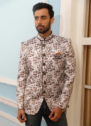 Buy Wedding Wear Grey Brocade Silk Printed Jodhpuri Jacket Online Silk Dress And Jacket For Wedding