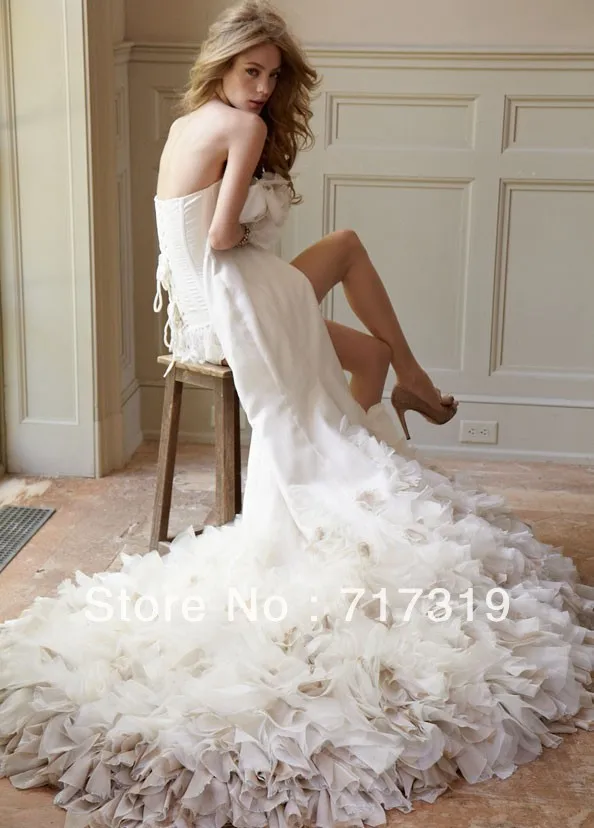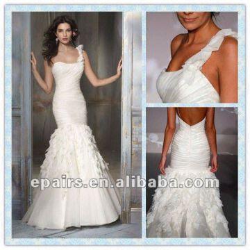 Mwd06 Ivory Silk Organza Bodice One Shoulder Neckline Sleeveless Silk Trumpet Wedding Dress