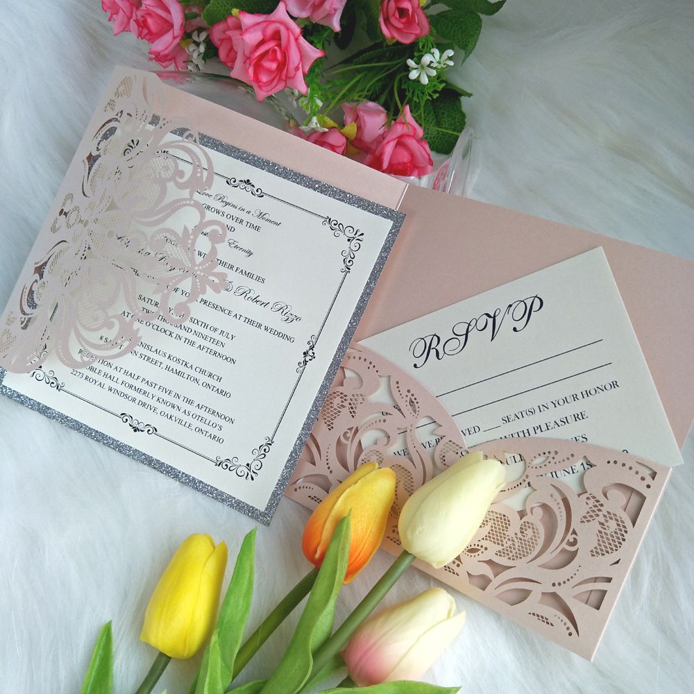 Silver Glitter Blush Pink Wedding Invitations Evening Silver And Pink Wedding Invitations