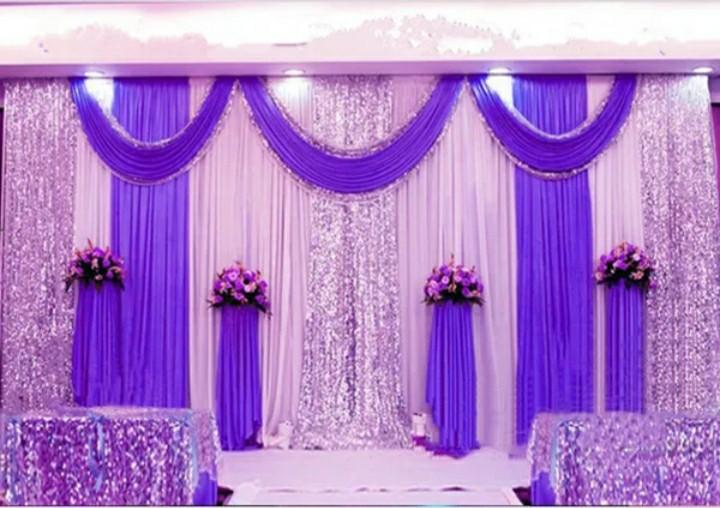 Ice Silk White Wedding Backdrop Curtain With Purple Silver Silver And White Wedding