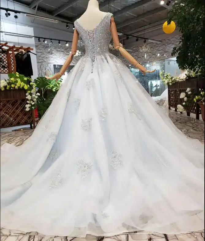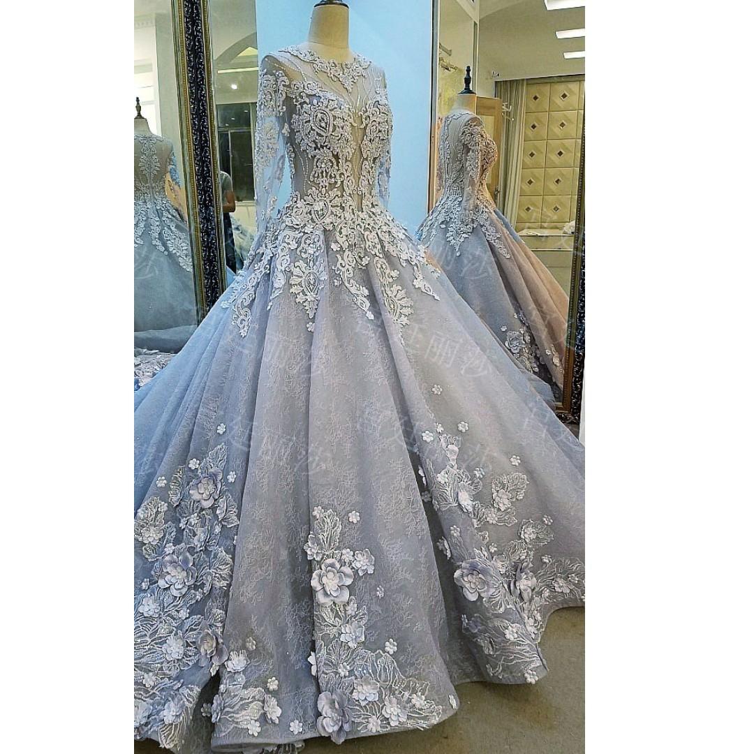 Luxurious Silver Grey Handmade Lace Diamond Wedding Dress Bridal Silver Grey And White Wedding Dress