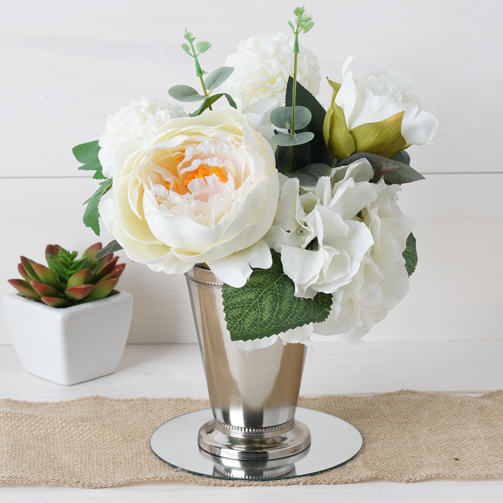 Modern Peach And Silver Wedding In Chicago Centerpieces Silver Vases Wedding Centerpieces