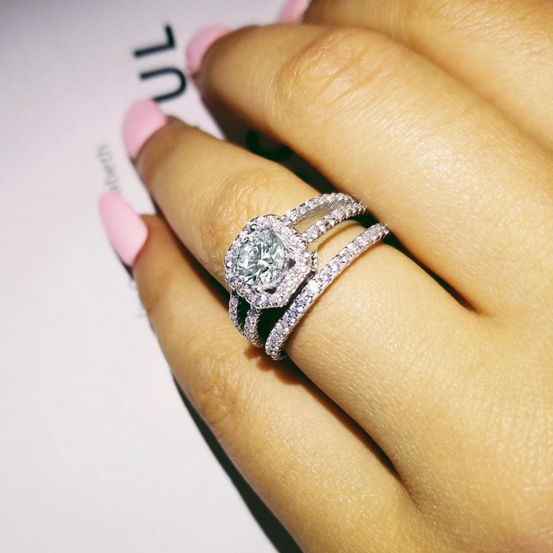 Personalized 925 Sterling Silver Wedding Ring Set With Cubic Silver Wedding And Engagement Ring Sets
