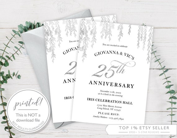 Personalized Anniversary Invitations Wedding Anniversary Invites 25th Anniversary 50th Anniversary Silver Silver Wedding Anniversary Invitation Wording