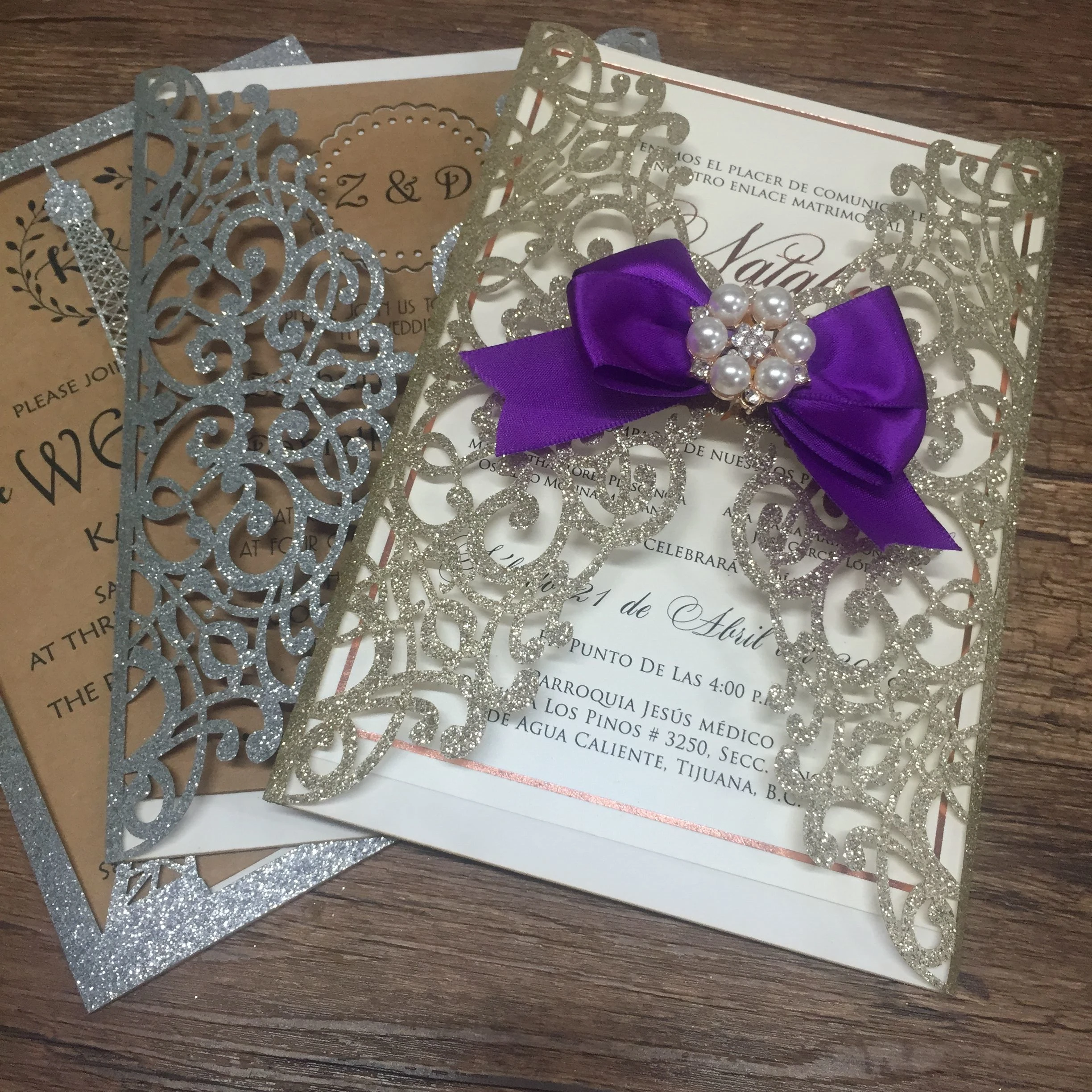 Elegant Pink And Silver Rose Laser Cut Glittery Wedding Silver Wedding Invitations Cheap
