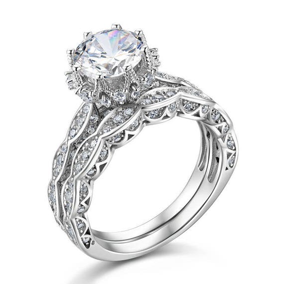 Women 1 8 Ct Genuine 925 Sterling Silver Wedding Ring Sets Etsy Silver Wedding Rings Sets