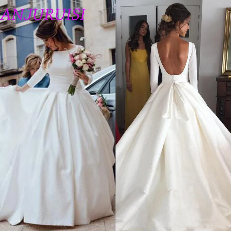 Jieruize White Lace Appliques Backless Wedding Dresses 3 4 Sleeves Simple 3 4 Sleeve Wedding Dresses