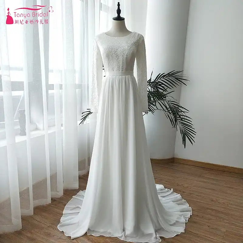 Simple Flowy Chiffon Off Shoulder Sleeve Summer Wedding Dress Long Simple Flowy Chiffon Wedding Dress