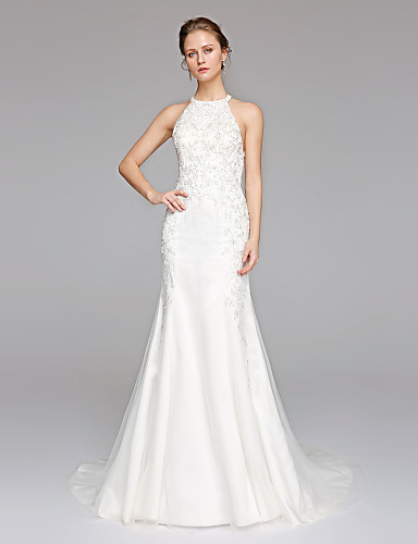 Dressv Elegant Sample Halter Neck Mermaid Wedding Dress Sleeveless Simple Halter Neck Wedding Dresses