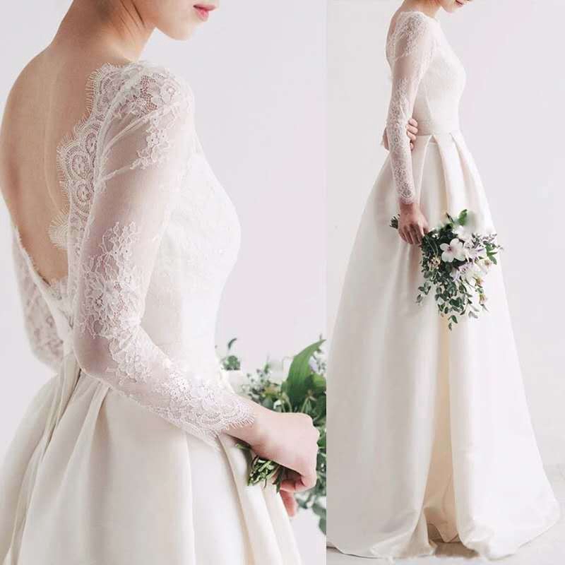 Modest Simple Light Champagne Beach Wedding Dresses 2020 A Simple Light Wedding Dresses