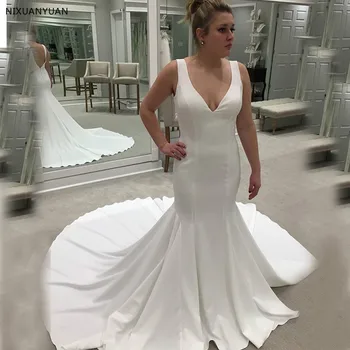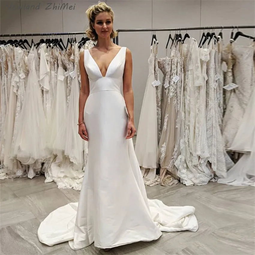 Newland Zhimei Sexy Deep V Neck Bride Dresses Simple Mermaid Style Simple Mermaid Simple Wedding Dress Styles