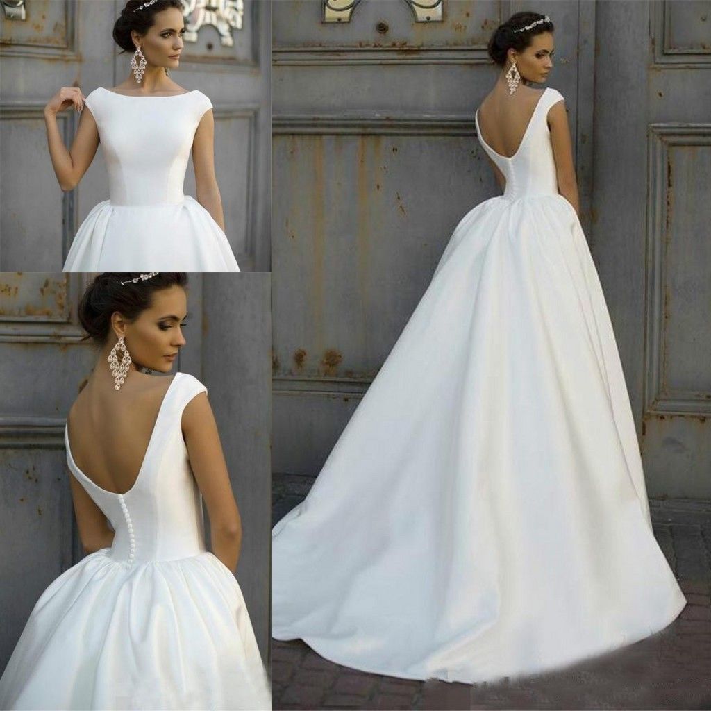 A Line Off The Shoulder Simple White Long Wedding Dress With Train Simple Off White Wedding Dresses