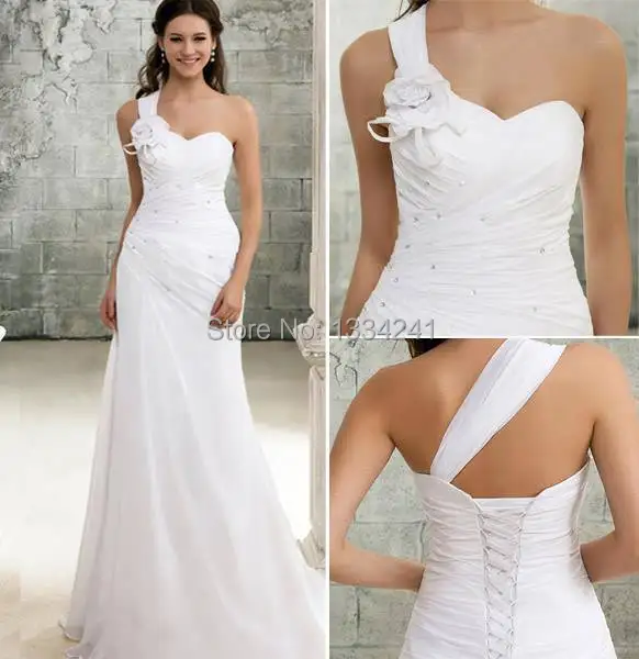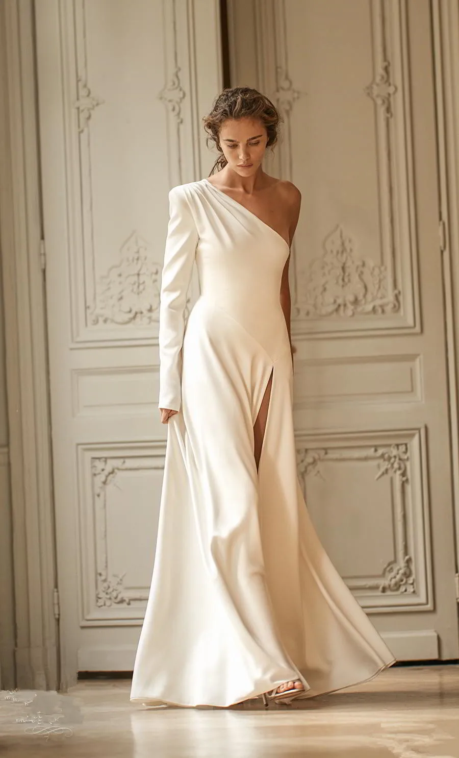 Simple One Shoulder Sheath Column Crystal Sweep Brush Train Simple One Shoulder Wedding Dresses