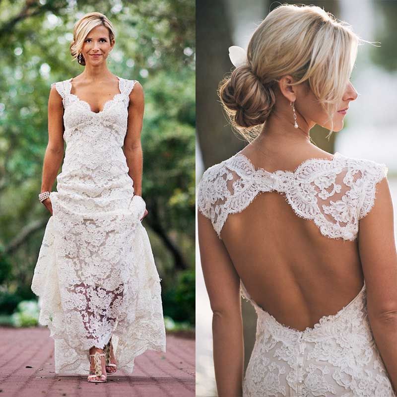 Discount Cheap Beach Wedding Dresses Sweetheart Cap Sleeves Floor Simple Open Back Wedding Dresses