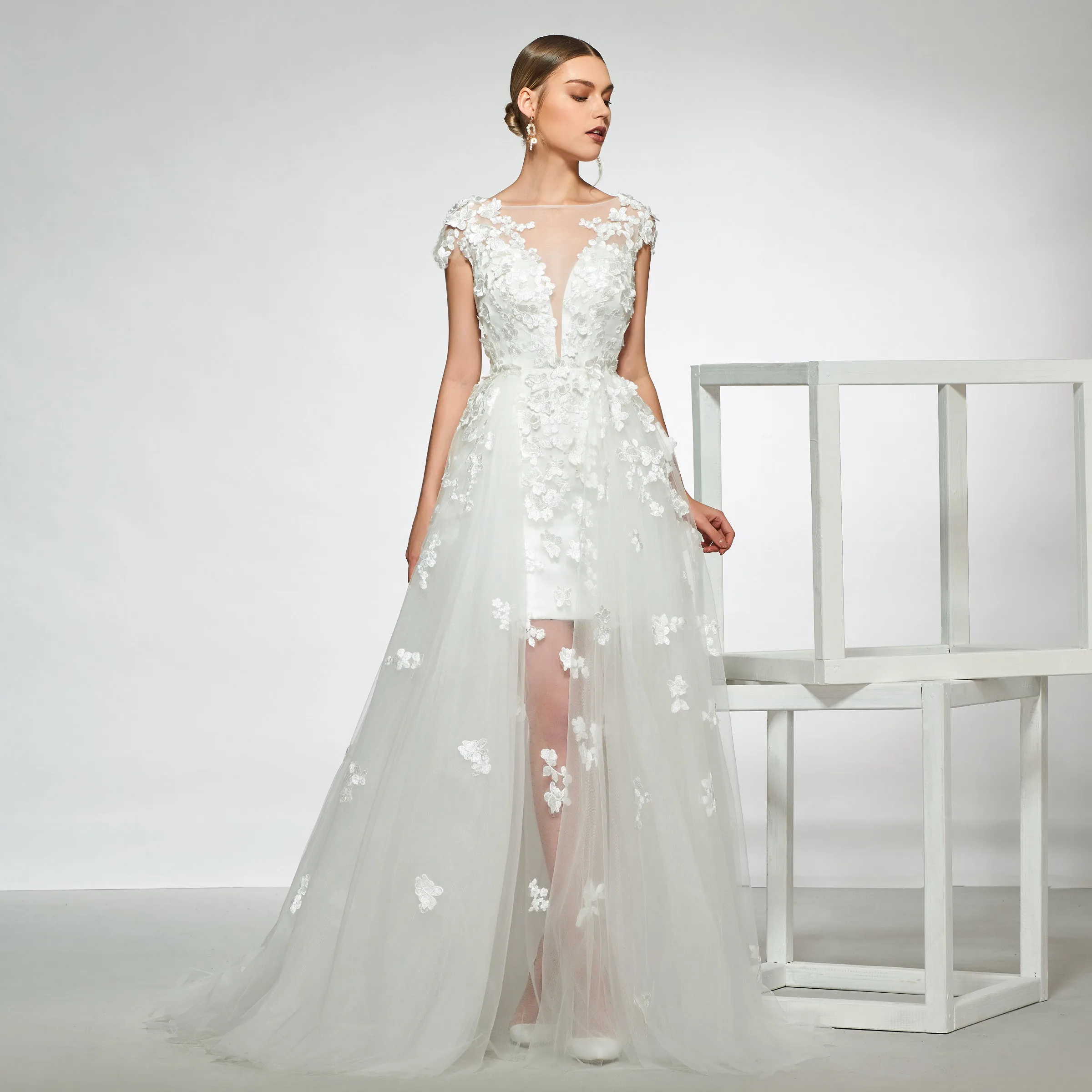 Tanpell Bateau Wedding Dress Cap Sleeve Simple Outdoor A Line Simple Outdoor Wedding Dress