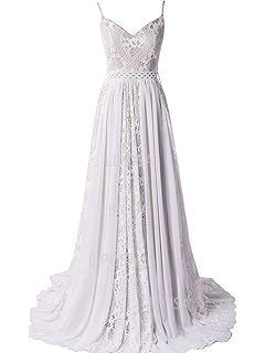 Heartgown Women S Lace Chiffon Beach Wedding Dress Spaghetti Strap Simple Spaghetti Strap Backless Wedding Dresses