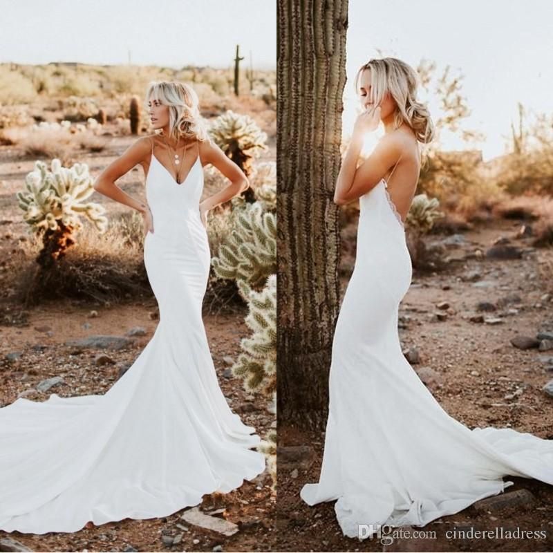 2020 New Sexy Country Backless Mermaid Wedding Dresses Simple Simple Spaghetti Strap Backless Wedding Dresses
