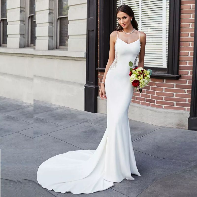 Simple White Spaghetti Strap Wedding Dresses For Bridal Appliques Simple Spaghetti Strap Wedding Dress