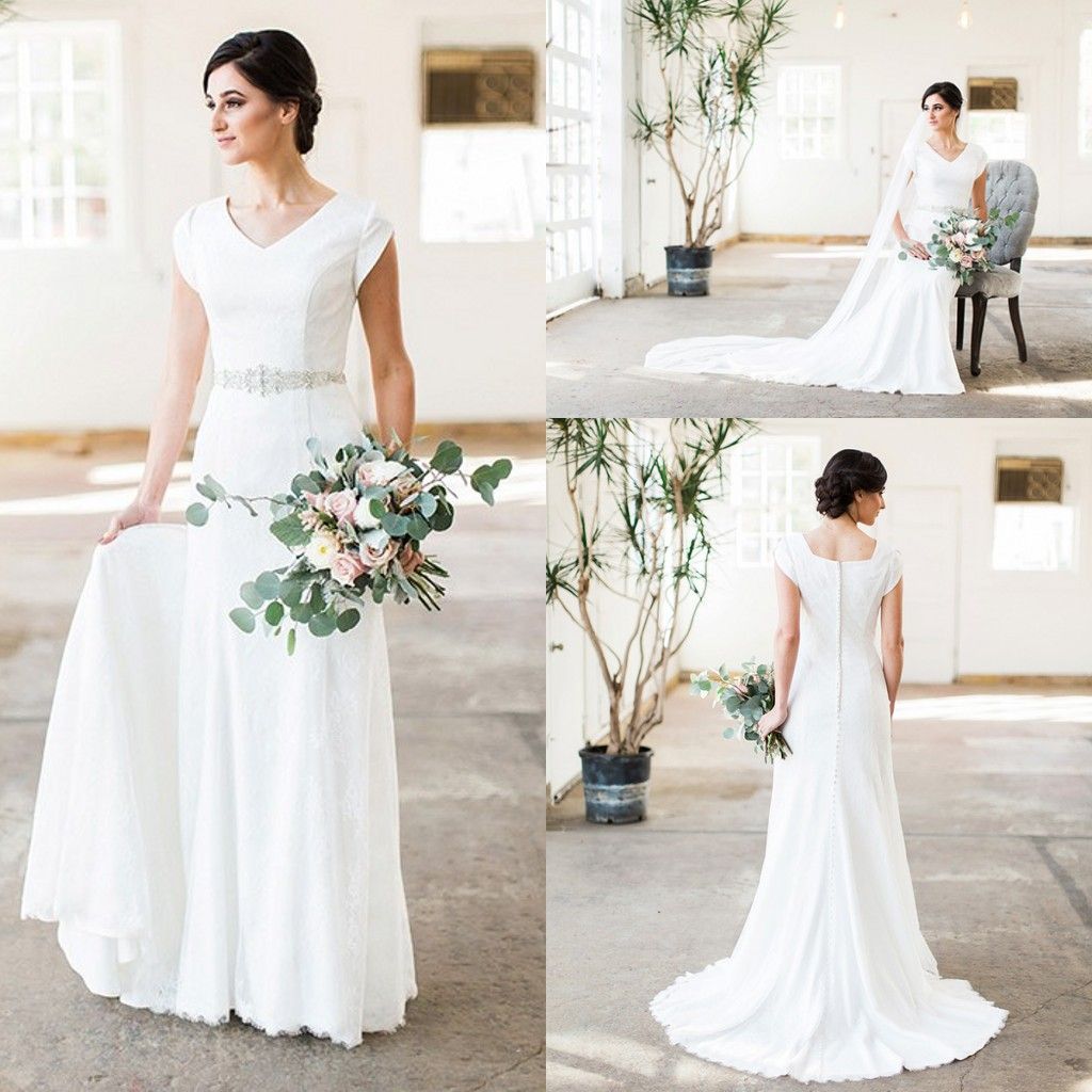 A Line V Neck Sleeveless Lace Gorgeous Wedding Dress Modest Bride Simple Wedding Dresses Modest