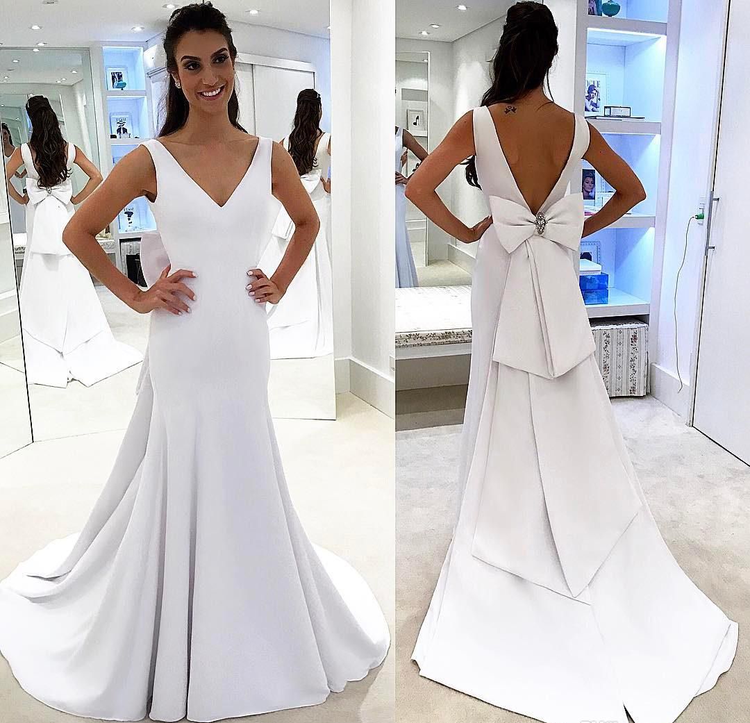 Modest Simple Wedding Dresses 2017 White Trumpet Mermaid Simple Wedding Dresses Modest