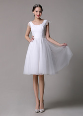 Simple Wedding Dresses Tulle Scoop Neck Knee Length Short Bridal Simple Wedding Dresses With Cap Sleeves