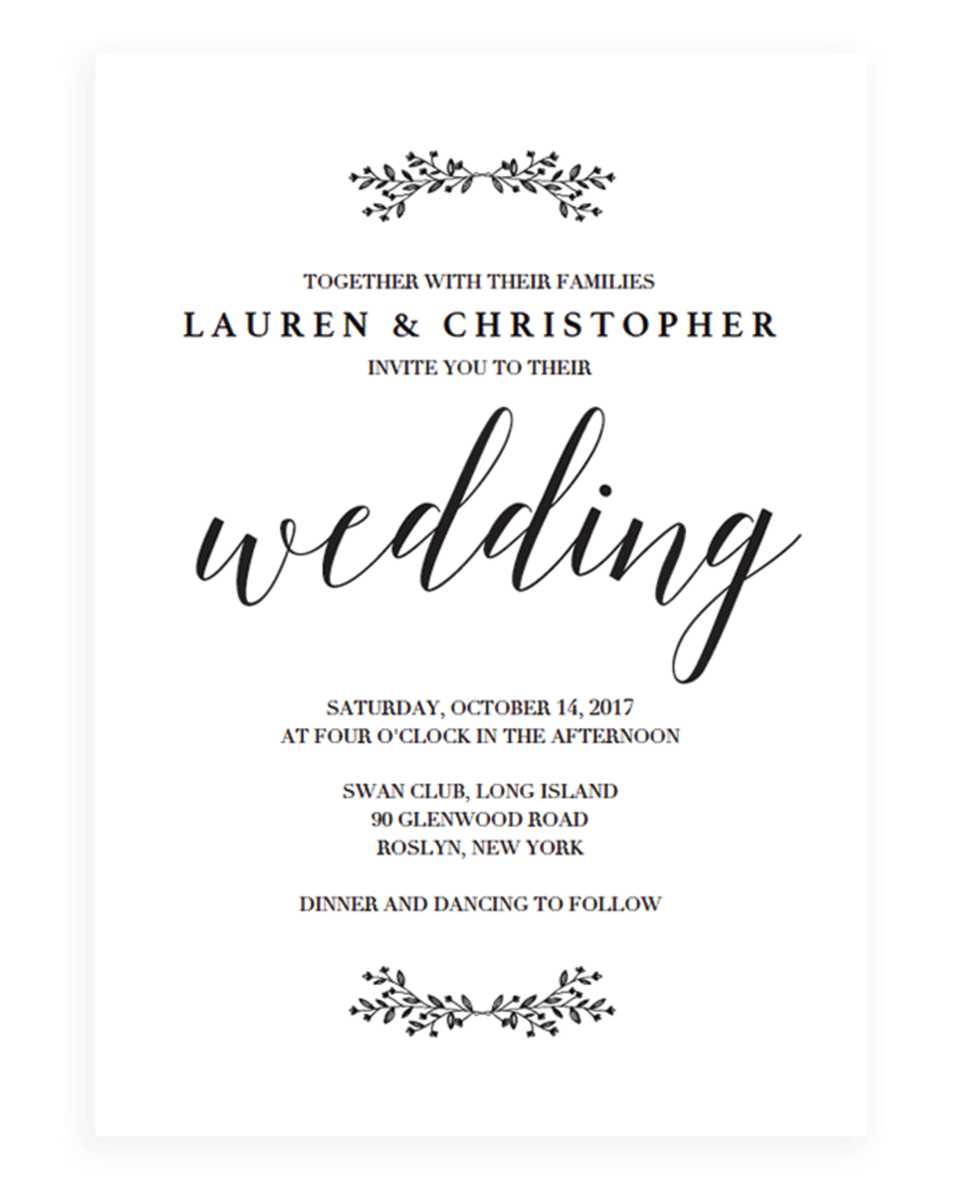 Simple Wedding Invitation Black And White Tl1 Simple Wedding Invite