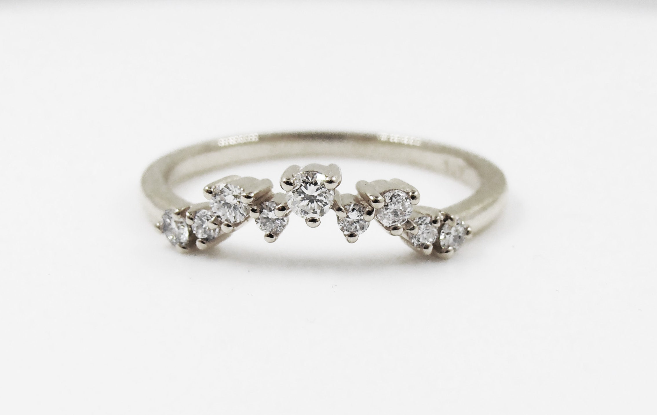 14k Solid White Gold Space Apart 5diamonds Wedding Band Simple Simple White Gold Wedding Band