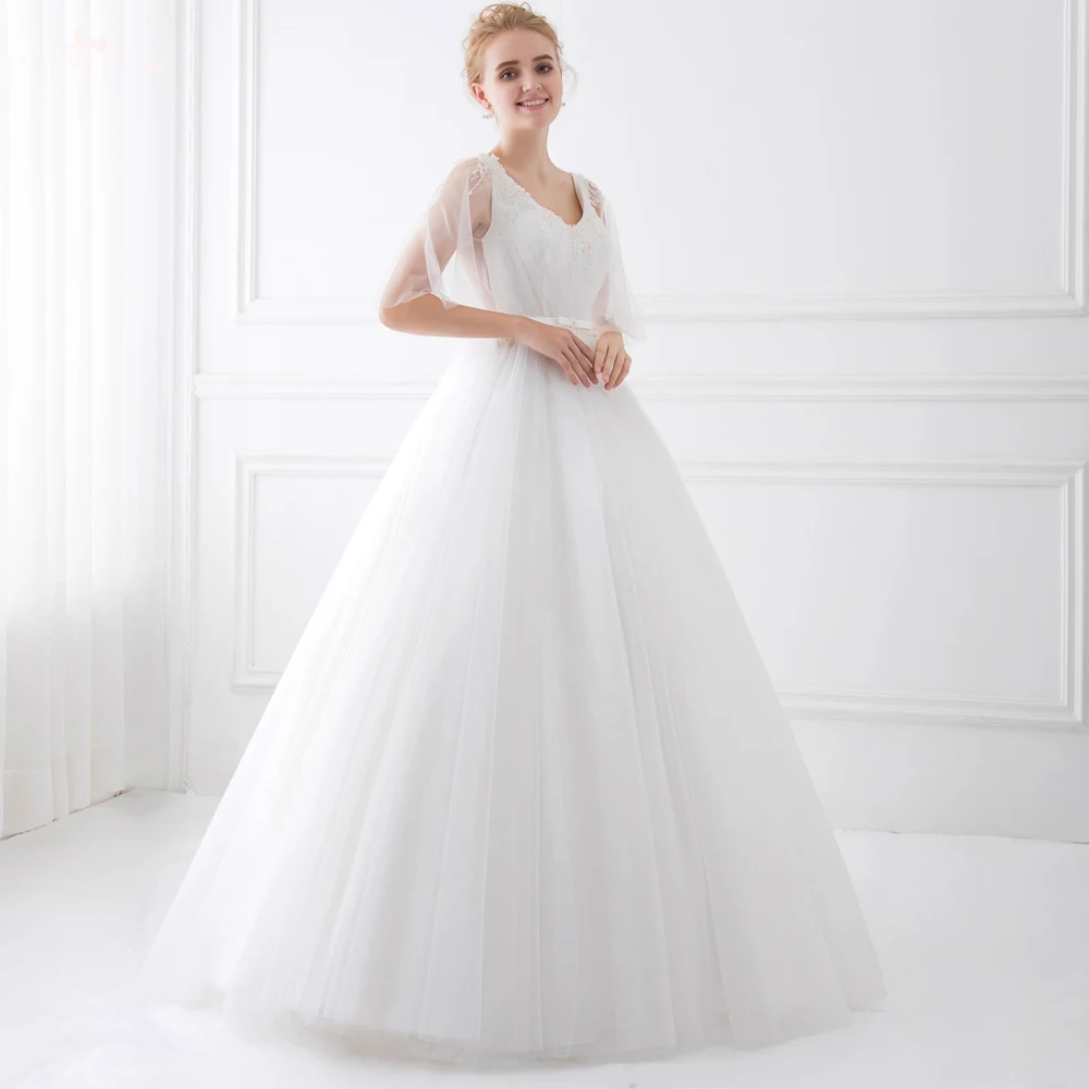 Tw0209 Illusion Sleeve Simple Holy White Wedding Dress Bridal Simple White Wedding Gown