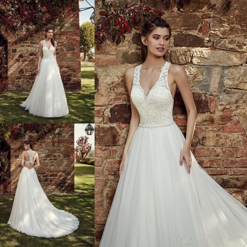 Discount Outside Garden A Line Wedding Dresses Soft Tulle Beaded Soft A Line Wedding Dresses