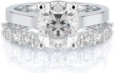 Glitz Design Two Row Princess Solitaire Diamond Engagement Ring Solitaire Diamond Wedding Ring Sets