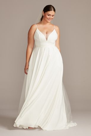 Illusion Deep V Spaghetti Plus Size Wedding Dress David S Bridal Spaghetti Strap Deep V Wedding Dress