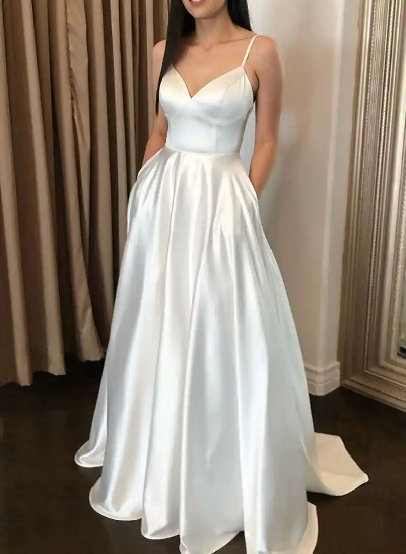 A Line Spaghetti Strap Wedding Dress Bridal Dress Satin Wedding Gown Custom Wedding Dresses Op Etsy Trouwjurk Eenvoudig Bruidskleding Baljurken Spaghetti Strap Satin Wedding Dresses